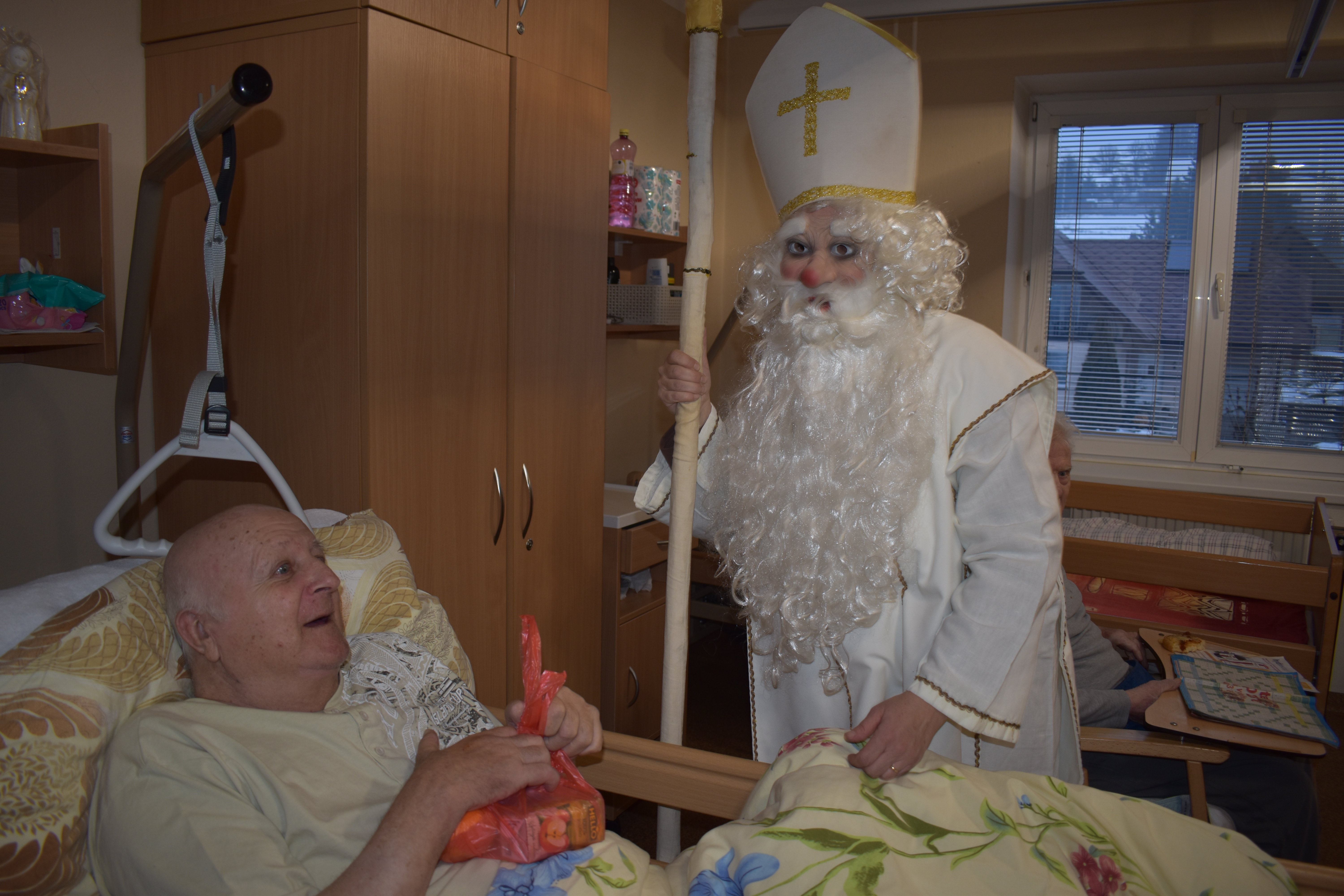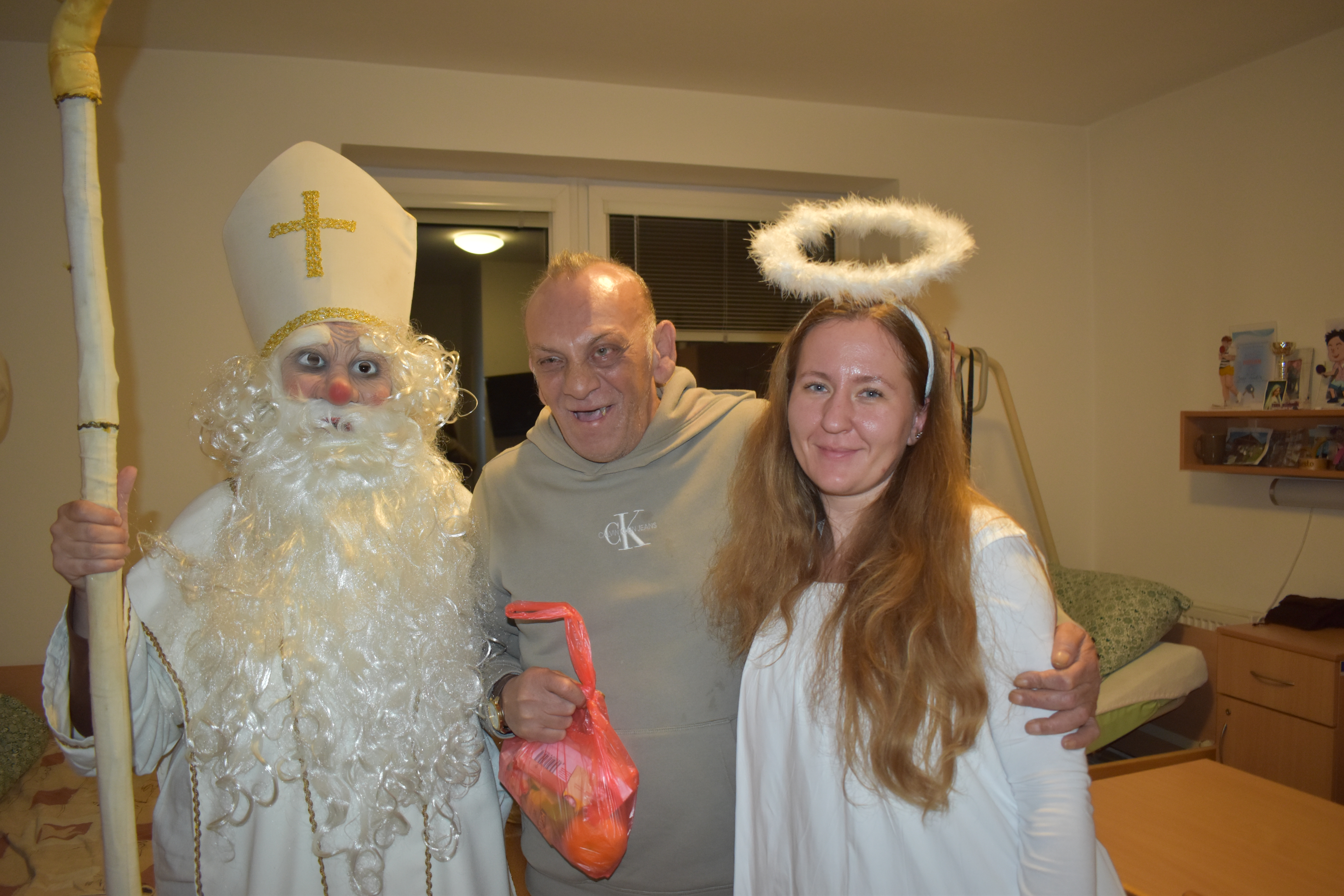 Piatkové popoludnie, 5.12.2025 sa nieslo v znamení radosti a prekvapenia. Do nášho zariadenia zavítal Mikuláš, ktorý sa rozhodol potešiť každého osobne. S úsmevom a balíčkom v ruke vstupoval do izieb prijímateľov, kde rozžiaril ich tváre a priniesol chvíľu šťastia.