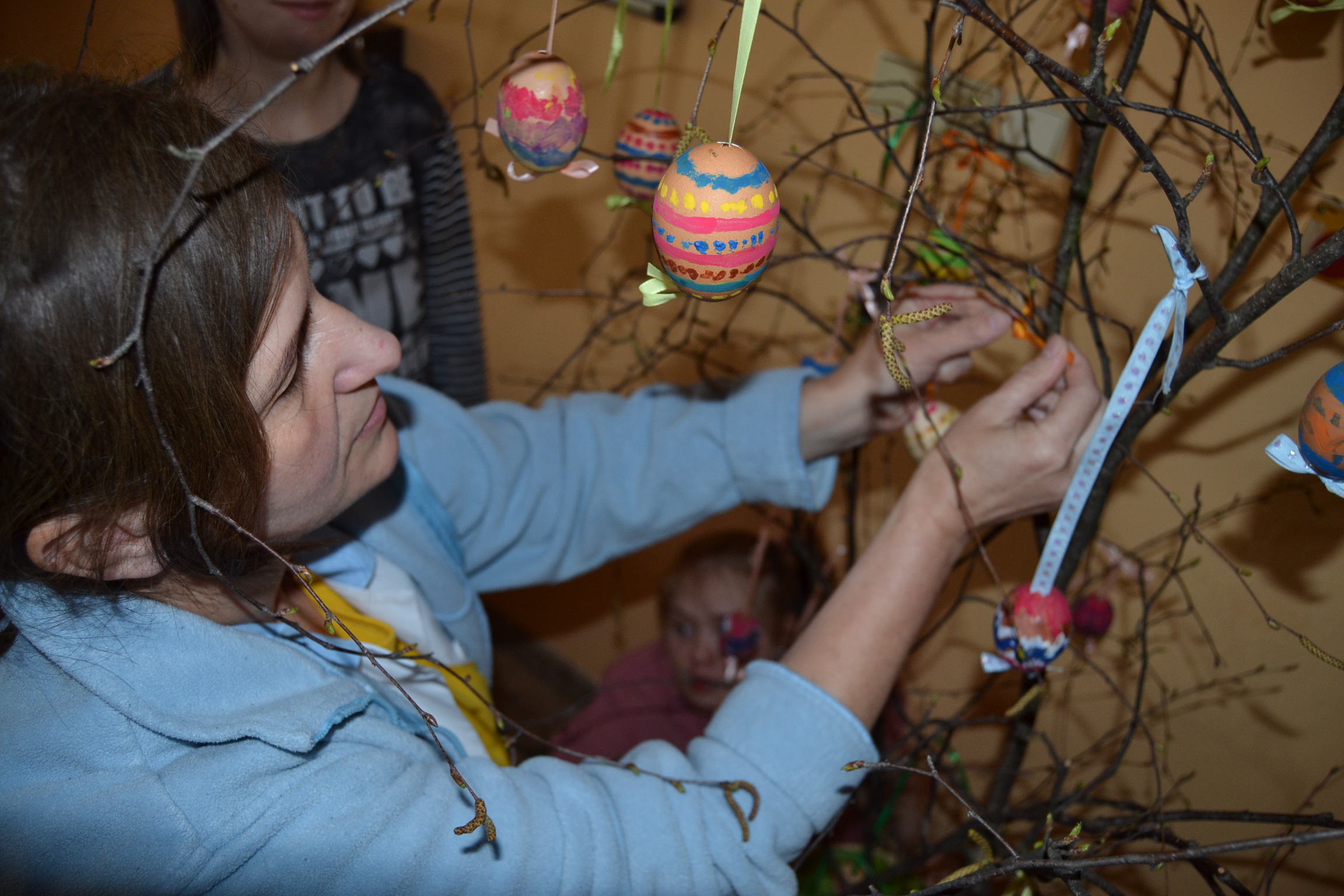 Výzdoba interiéru zariadenia s návštevníkmi denného centra, apríl 2017